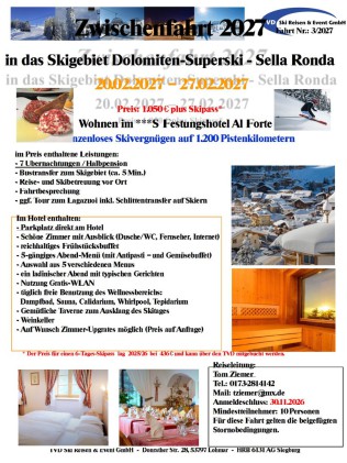 Vom 20. - 27.02.2027 nach Arabba/Dolomiten